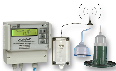· ЭХО-Р-03-3 – для измерений объемного расхода и суммарного объема в безнапорных каналах прямоугольной формы, оборудованных измерительными лотками или водосливами при свободном и затопленном истечении потока (двухлучевой); включает в себя преобразователь передающий измерительный ППИ-3 и два акустических преобразователя АП-11 или АП-13 для измерения уровня в одном водоводе перед измерительным лотком и после него.